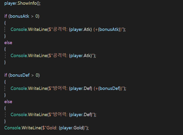 - Character/Player 클래스의 ShowInfo는 실시간 변화값을 반영하기 어려워 가독성과 유지보수성이 떨어짐